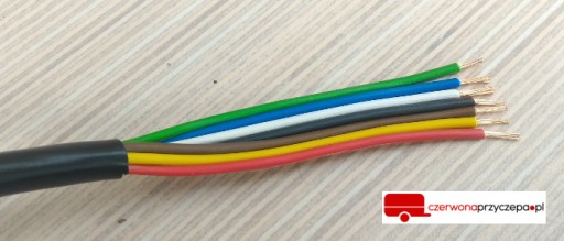 Przewód jest elastyczny - linka. Bardzo mocna i trwała izolacja doskonale zabezpiecza przed wilgocią. Stosowany w instalacjach przyczep jako główna wiązka zasilająca oświetlenie. Można również zastosować do montażu wiązki haka w samochodzie.