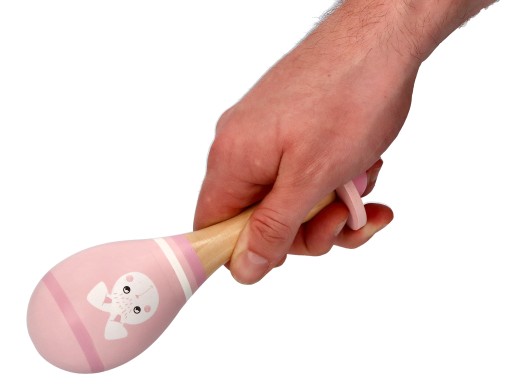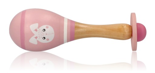 Piękne w swojej prostocie drewniane marakasy wydają przyjemne, rytmiczne dźwięki. Króliczek Benek zdobi ten różowy marakas, który sprawdzi się jako zabawka muzyczna, ale również dla maluchów jako grzechotka.
