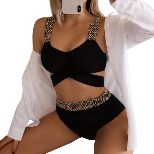 Strój Kąpielowy Dwuczęściowy Bikini Wysoki Stan Gia