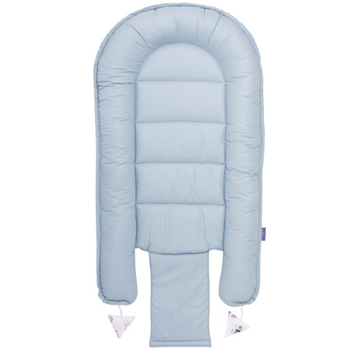Gniazdko doskonale służy także starszym maluszkom stając się idealną przestrzenią do zabawy, leżenia na brzuszku i pierwszych ćwiczeń – podnoszenia główki czy leżących w jego zasięgu grzechotek. Rozwiązanie sznurków pozwala na używanie kokonu jako przewijaka.