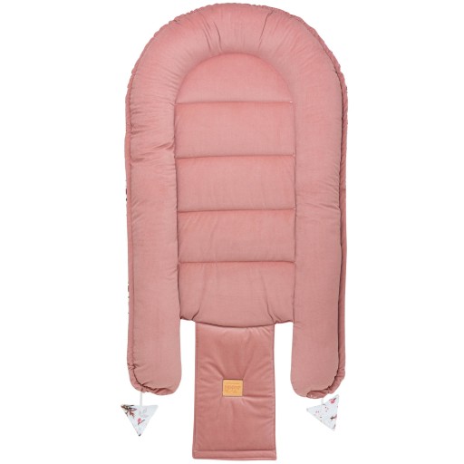Gniazdko doskonale służy także starszym maluszkom stając się idealną przestrzenią do zabawy, leżenia na brzuszku i pierwszych ćwiczeń – podnoszenia główki czy leżących w jego zasięgu grzechotek. Rozwiązanie sznurków pozwala na używanie kokonu jako przewijaka.