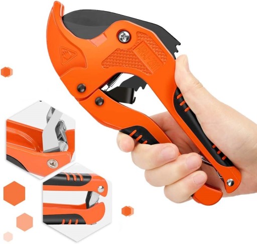 - Obcinak do rur z funkcją grzechotki o maksymalnym rozwarciu 42 mm, za pomocą którego można łatwo ciąć rury i poprawić wydajność pracy.