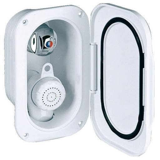 Szafka prysznicowa ze słuchawką, przewodem 3 m i mieszaczem. Idealne rozwiązanie do małych pomieszczeń, kamperów, jachtów.