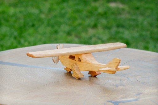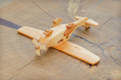 Model samolotu wykonany ręcznie z drewna – z dokładnością oraz dbałością o szczegóły.