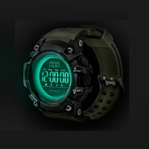 Cyfrowy zegarek na rękę z wieloma przydatnymi funkcjami i wyrazistym stylem, który pasuje na każdy nadgarstek. Projekt pasuje do stylu myśliwych, wędkarzy i wszystkich, którzy lubią spędzać czas na świeżym powietrzu. To także miły dodatek do noszenia na co dzień.