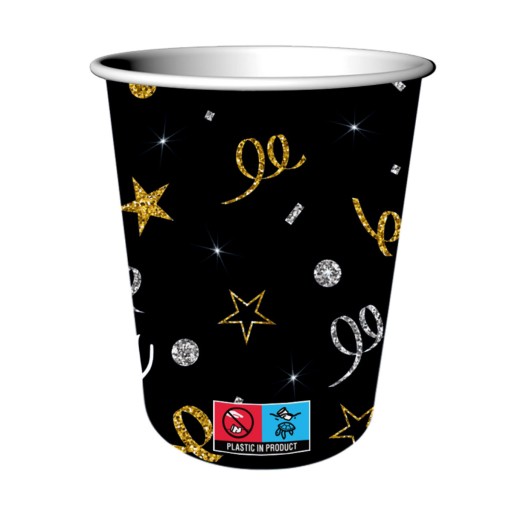 Elegancka czerń nakrapiana złotymi i srebrnymi wzorami sprawi, że wszyscy będą prosić o dolewkę! Dzięki pojemności 200 ml kubeczki pomieszczą odpowiednią ilość drinków i napojów.