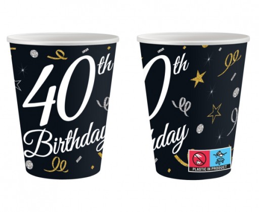 БУМАЖНЫЙ СТАКАН «40-ЛЕТИЙ ДЕНЬ РОЖДЕНИЯ» 240МЛ, 6 ШТ.