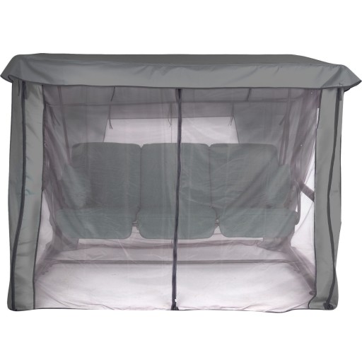 Daszek i siatka w kolorze antracytowym, siatka wyposażona w 5 zamków błyskawicznych na bokach + 1 mocujący do dachu. Moskitiera okala całą huśtawkę, dopasowana jest do huśtawki Rimini / Venezia.