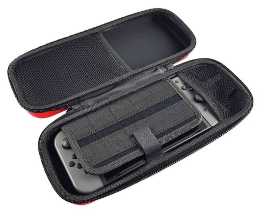 Etui jest idealnie dopasowane do Twojej konsoli Nintendo Switch i Nintendo Switch Oled - idealnie ją zabezpiecza. Wewnątrz posiada specjalne przegródki mieszczące aż 10 kartridży z grami. w górnej części futerału znajduje się specjalne miejsce na przechowywanie akcesoriów do konsoli takich jak ładowarka, Powerbank, słuchawki, pudełka z gier itd.
