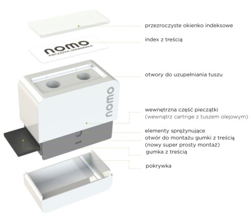 Pieczątka NOMO pozwala na graficzne spersonalizowanie matrycy, dzięki temu twoja pieczątka może mieć dowolny wzór!