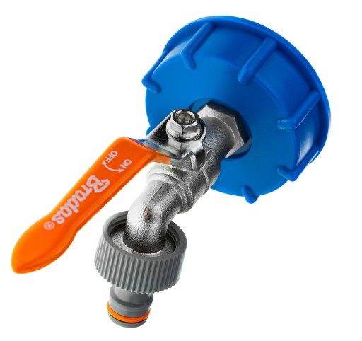 ✨ ZESTAW METALOWY KRAN CZERPALNY Z WYJŚCIEM NA GZ 3/4 CALA, NAKRĘTKA IBC S60x6, WTYK NA WĄŻ 1/2 CALA, NYPEL marki Bradas ✨