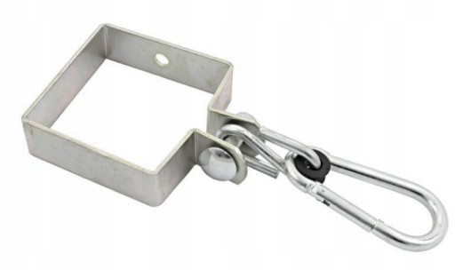 Mocny hak z do huśtawek z obejmą z blachy cynkowanej na złoto lub srebrno.