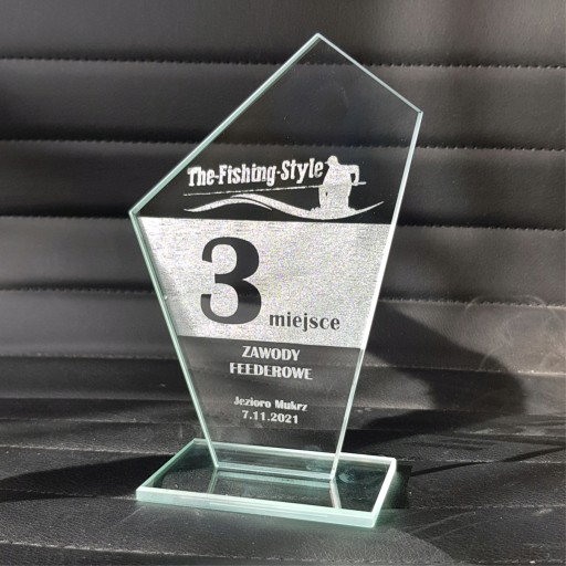Statuetka wykonana jest z polskiego szkła o grubości 6 mm, z wykorzystaniem nowoczesnej technologii grawerowania laserem na szkle.