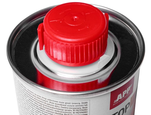 APP R Stop jest penetrującym środkiem antykorozyjnym zatrzymującym rozwój korozji. Zastosowany na oczyszczoną z rdzy nalotowej powierzchnię usuwa wilgoć z ognisk korozji (wżerów) i izoluje je. Produkt gotowy do użytku i przygotowany do nanoszenia pędzlem lub natryskiem. Zaimpregnowane powierzchnie mogą być pokrywane produktami poliestrowymi oraz 1 i 2 składnikowymi podkładami. Produkt reaguje z wilgocią. Po użyciu natychmiast szczelnie zamykać opakowanie.