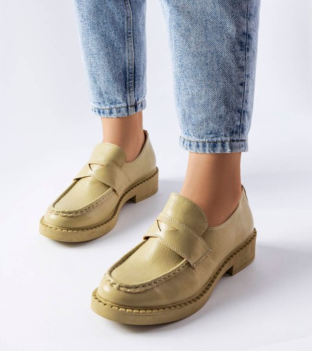 Mokasyny Élodie na grubej podeszwie. Wykonane z wysokiej jakości skóry ekologicznej łącznie z wkładką. Niska cholewka zdobiona minimalistycznym designem na przodzie cholewki, która dodaje elegancji. Uniwersalny kolor sprawia, że mokasyny będą pasowały do ubrań w każdym stylu i kolorze. Numeracja standardowa, prosimy sugerować się swoim rozmiarem.