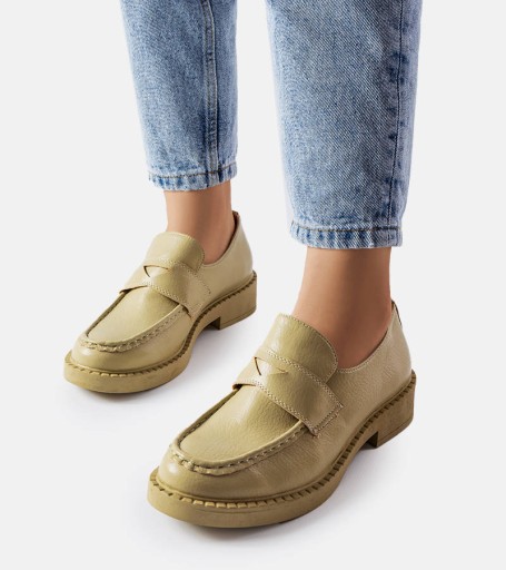 Mokasyny Élodie na grubej podeszwie. Wykonane z wysokiej jakości skóry ekologicznej łącznie z wkładką. Niska cholewka zdobiona minimalistycznym designem na przodzie cholewki, która dodaje elegancji. Uniwersalny kolor sprawia, że mokasyny będą pasowały do ubrań w każdym stylu i kolorze. Numeracja standardowa, prosimy sugerować się swoim rozmiarem.