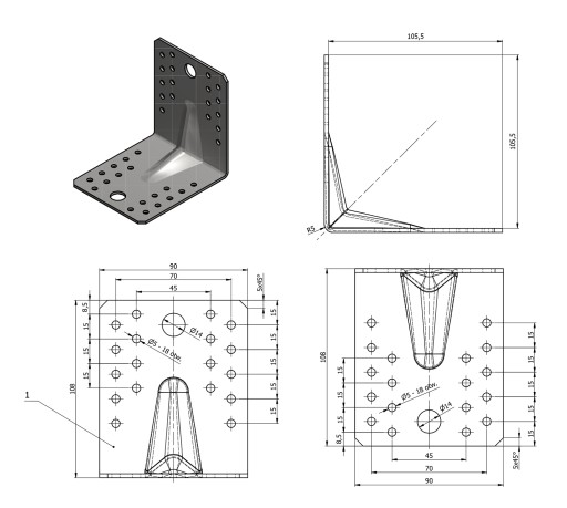 Zastosowanie: Kątowniki z głębokim przetłoczeniem wykazują się bardzo dużą wytrzymałością na zginanie. Posiadają one szeroką gamę przemyślanych układów otworowania, dzięki czemu można je stosować zarówno w standardowych rozwiązaniach, jak i dobierać pod indywidualnie projektowane złącza.
