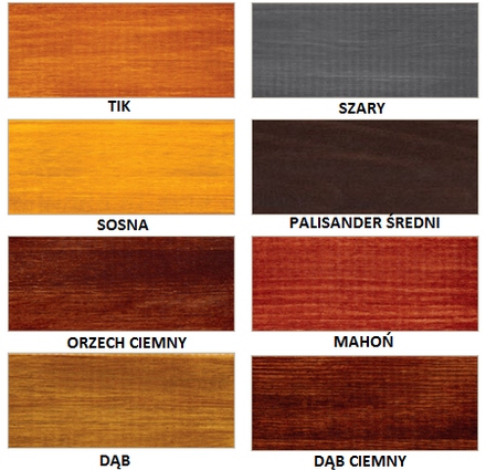 Komplet mebli malowany jest jednokrotnie impregnatem dekoracyjnym Drewnochron. Aukcja dotyczy zestawu w kolorze dąb ciemny.