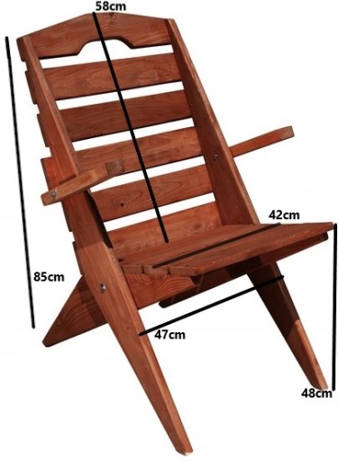 Zestaw mebli ogrodowych z drewna charakteryzujący się dużą naturalną odpornością na warunki atmosferyczne. Całość wykonana estetycznie z idealnymi gładkimi powierzchniami. Doskonale nadają się do ogrodu, na działkę lub taras. Krzesła posiadają ergonomiczne kształty, składane podłokietniki, oraz wzmocnienie w dolnej części przy siedzisku.