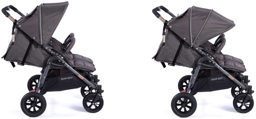 Snap Duo Sport to lekki (12,75kg.) wózek spacerowy australijskiej marki Valco Baby. Przeznaczony dla dwójki dzieci już od momentu urodzenia (po dokupieniu gondolek) aż do 22 kg wagi (na jedno siedzisko). Charakteryzuje się szerokimi i wygodnymi siedziskami z rozszerzaną budką, rozkładanym do pozycji leżącej oparciem oraz pompowanymi kołami.