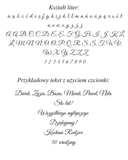 Z uwagi na kształt liter odradzamy pisanie teksów wyłącznie w formie wielkimi literami (będzie nieczytelny napis).
