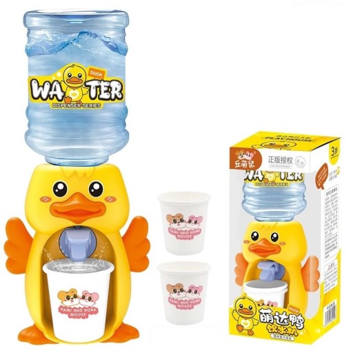 Zabawkowy dystrybutor do wody dla dzieci w kształcie kaczki. Dystrybutor jest bardzo łatwy w użyciu, wystarczy wlać wodę lub jakiś inny napój i nacisnąć przycisk a napój wleje się do kubeczka. Zabawka przez swój kształt z pewnością wzbudzi zainteresowanie dzieci, przez co chętniej będą pić wodę.