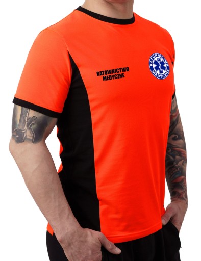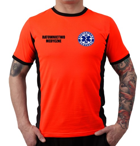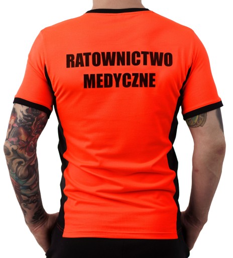 - Koszulka w kolorze czerwonym fluorescencyjnym (red hv).