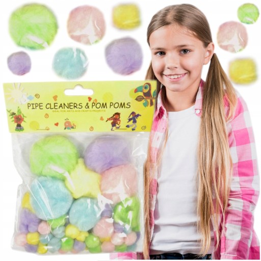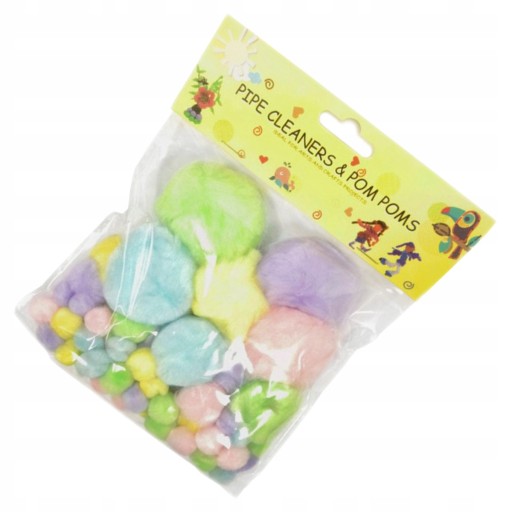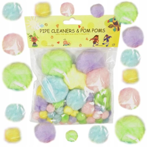 Pastelowe Pompony Do Dekoracji 60szt MIX ROZMIARÓW