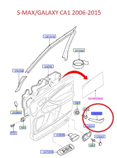 НАКЛАДКА РУЧКИ ПЕРЕДНЕЙ ДВЕРИ ПРАВАЯ S-MAX _ 1475333 _ 6M21-U24184-BBSMDM