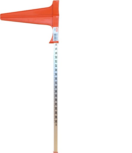 - Wyraźna podziałka w milimetrach i centymetrach po obu stronach szyny głównej