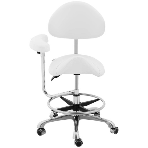 Krzesło siodłowe z podłokietnikiem - oparcie i siedzisko z regulacją wysokości - 51-61 cm - 150 kg - białe