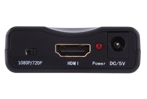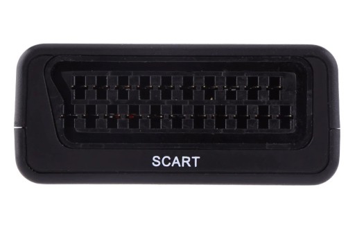 Nowy adapter, konwerter z AV / Euro / SCART do HDMI. Konwertuje obraz i dźwięk analogowy z wyjścia SCART/AV/EURO (z urządzeń starszej generacji np. konsole, odtwarzacze, dekodery TV) do postaci cyfrowej HD. Umożliwia np. podłączenie odtwarzacza DVD z wyjściem EURO do telewizora z wejściem HDMI.