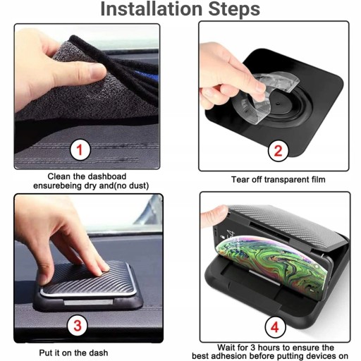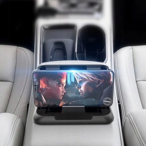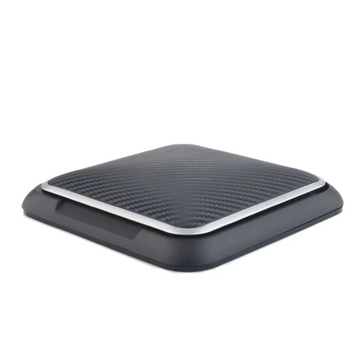 Produkt posiada stabilny uchwyt i jednocześnie elegancki wygląd. Na górnej pokrywie znajduje się materiał imitujący karbon, jeden z najbardziej prestiżowych materiałów do wykończenia wnętrz sportowych samochodów. Pozwala na ułożenie smartforna pod odpowiednim kątem.