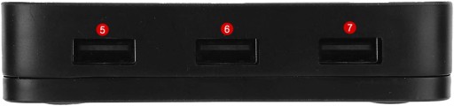 - Złącza USB: 2xUSB do podłączenia komputera oraz 3xUSB A do podłączenia urządzeń I/O