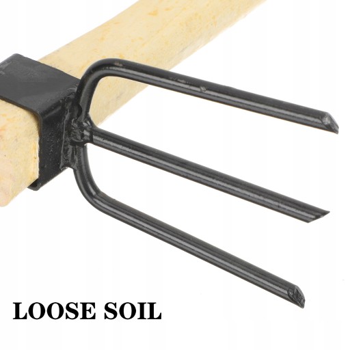 Narzędzie ogrodnicze wykonane jest z wysokiej jakości materiałów drewnianych i żelaznych, które są trwałe i odporne na odkształcenia.