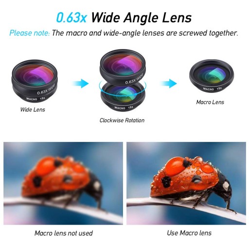 2. Obiektyw MAKRO - pozwala na robienie ostrych i wyraźnych zdjęć z niewielkiej odległości (1-5 cm) od fotografowanego lub filmowanego obiektu. Obiektyw idealnie spisuje się przy fotografowaniu i filmowaniu owadów, kwiatów, małych przedmiotów, itd. Nawet 15-krotne powiększenie MAKRO, w stosunku do standardowego obrazu uzyskanego w telefonie bez dodatkowego obiektywu, pozwala uchwycić najmniejszy detal.