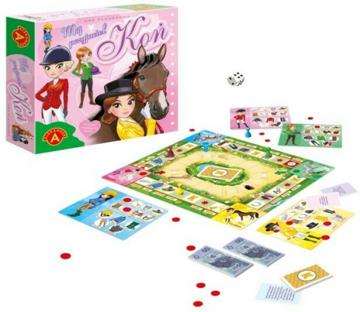 W grze Mój Przyjaciel Koń, każdy gracz jest opiekunem konia. Troszczy się o niego, pielęgnuje go, karmi, poi oraz sprząta stajnię. Dbając o swego pupila stara się jednocześnie zarobić pieniądze na kupno wymarzonego stroju jeździeckiego. Poruszając się pionkiem po zewnętrznym torze gry jej uczestnicy usiłują jak najszybciej zdobyć dowody opieki nad swoim koniem. Po zebraniu odpowiedniej ilości pieniędzy kupują elementy stroju jeździeckiego. Dopiero po ty, jak uczestnik gry zbierze na swojej Tablicy Gracza wszystkie żetony, które są dowodami wypełnienia obowiązków i skompletowania jeździeckiego ubioru, to może wówczas wybrać się na przejażdżkę swoim koniem. W grze zwycięży ten, kto pierwszy ukończy swoją przejażdżkę.Zawartość opakowania:plansza, tablice graczy - 4 sztuki, pionki - 4 sztuki, karty - 25 sztuk,żetony - 52 sztuk,pieniądze - 25 x 50 zł, kostka do gry, instrukcja