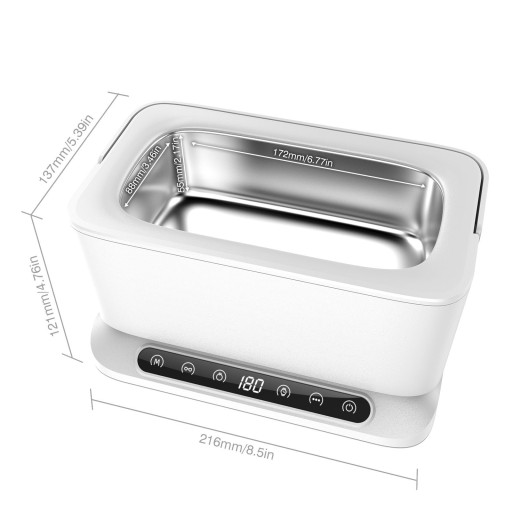 Ustawienie 4 trybów: cyfrowy wyświetlacz LED dokładnie pokazuje czas czyszczenia, 4 ustawienia trybu (180/240/300/360s), co pozwala na swobodne ustawienie odpowiedniego czasu pracy zgodnie z różnymi zabrudzeniami różnych przedmiotów, aby spełnić wszystkie potrzeby związane z czyszczeniem. Płyn do czyszczenia biżuterii może być dodany dla wzmocnienia czyszczenia.