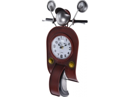Zegar ścienny o oryginalnym wyglądzie skutera. Utrzymany w stylu retro. Stanowi wyjątkową ozdobę mieszkania, domu czy biura. Zegar świetnie sprawdzi się w restauracji nadając jej wyjątkowego charakteru. Zegar jest idealnym pomysłem na prezent, szczególnie dla fanów motoryzacji. Oryginalny produkt holenderskiej marki Home Styling Collection. Wyprodukowano zgodnie z europejskimi standardami.
