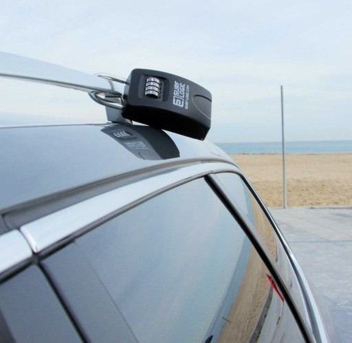 Surf Logic waży 770g, czyni go swego rodzaju małym sejfem. Możesz go przypiąć do felgi, haka, klamki auta oraz w wielu innych miejscach.