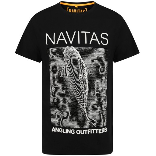 Czarna koszulka o standardowym kroju, wykończona nadrukiem na całej piersi inspirowanym okładką albumu Unknown Pleasures Joy Division i charakterystycznym białym logo na ramieniu.