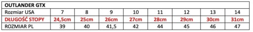 OUTLANDER GTX - tabela rozmiarów w opisie.