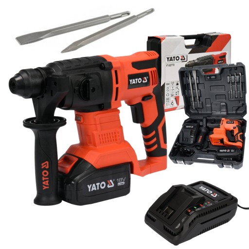 Lekka i ergonomiczna akumulatorowa młotowiertarka SDS-plus YATO z funkcją podkuwania. Dzięki niewielkiej wadze, krótkiemu korpusowi i zasilaniu wytrzymałą baterią doskonale sprawdzi się podczas montażu sufitów podwieszanych i seryjnego wiercenia w betonie. Polecana dla instalatorów, elektryków.