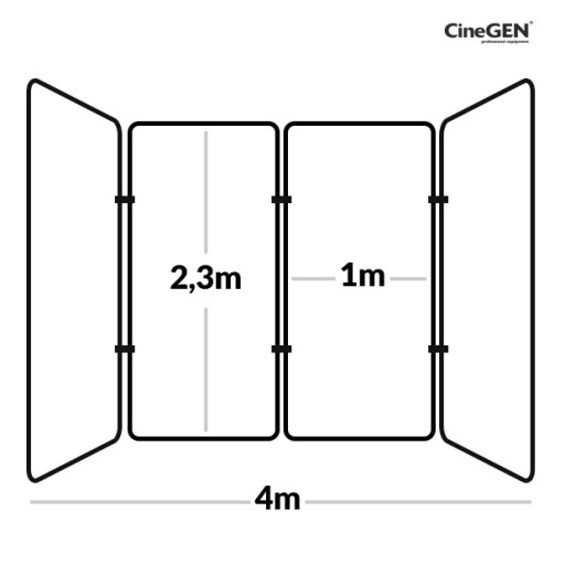 Modułowa, czteroelementowa rama nośna z tkaniną GreenScreen do szybkiej budowy podręcznego studia z kluczowaniem koloru (chroma key). Rama wysoka, umożliwia filmowanie sylwetki dorosłej osoby, wywiadu dwóch osób itp.