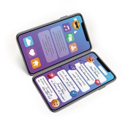 Wyjątkowe zaproszenie na urodziny, imieniny lub inną okazję do świętowania w ciekawym kształcie smartfona.