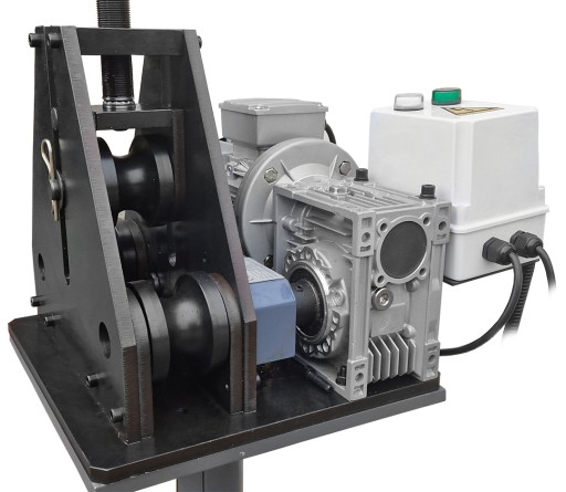 - Giętarka wyposażona jest w napęd elektryczny z motoreduktorem oraz posiada możliwość wymiany rolek.
