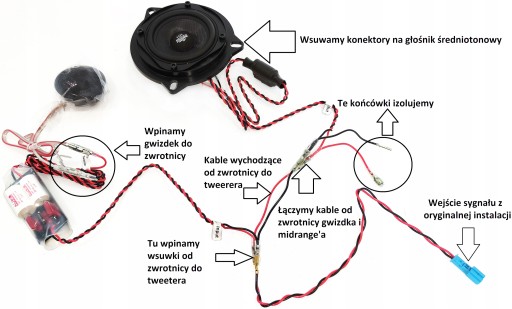- Kostka PnP pozwala podłączyć zwrotnicę w miejsce fabrycznego głośnika w drzwiach