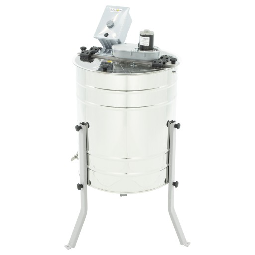 Wirówka do miodu o układzie kosza diagonalnym z napędem elektrycznym przystosowana do wirowania 4 ramek. Miodarka diagonalna 4-plastrowa umożliwia jednoczesne wirowanie 2 (ułożonych naprzeciwlegle) lub 4 ramek z miodem. Miodarka jest stabilna podczas pracy.
