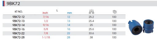 6 szczotek z adapterem do szybkiej wymiany: 12, 13, 14, 16, 22, 28 mm.