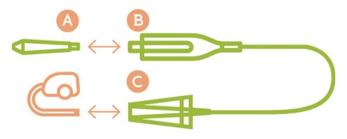 ✅ Proces odciągania zaczynamy od złożenia aspiratora, a następnie podłączenia do rury ssącej włączonego odkurzacza (800-1500W). Odciąganie wydzieliny wykonujemy w pozycji leżącej lub siedzącej dziecka, przykładając końcówkę A do otworu nosowego na 5-10 sekund (dla każdej dziurki). Po wykonanym zabiegu czyścimy aspirator ciepłą wodą z mydłem.